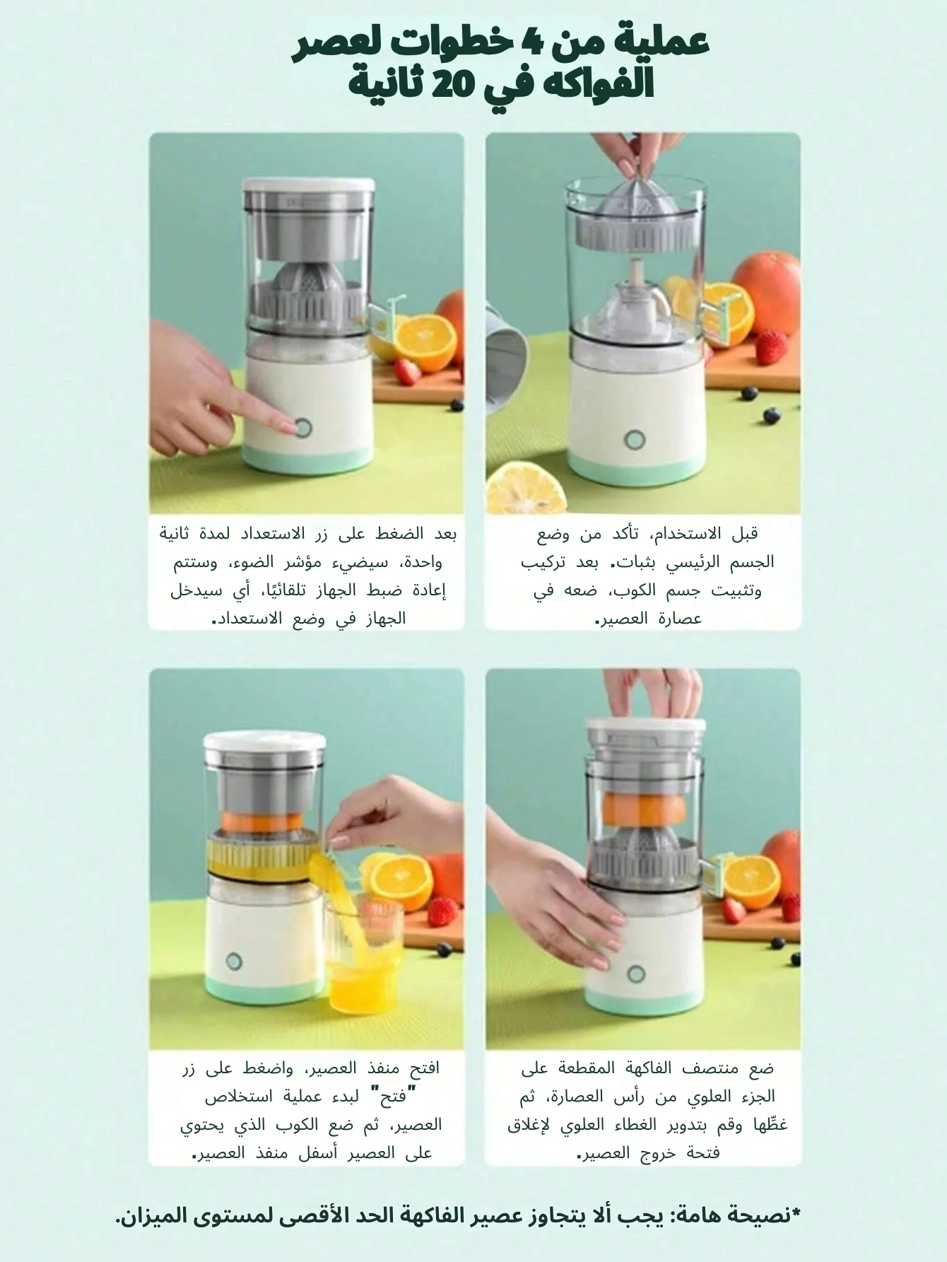 عصّارة برتقال كهربائية محمولة قابلة للشحن USB