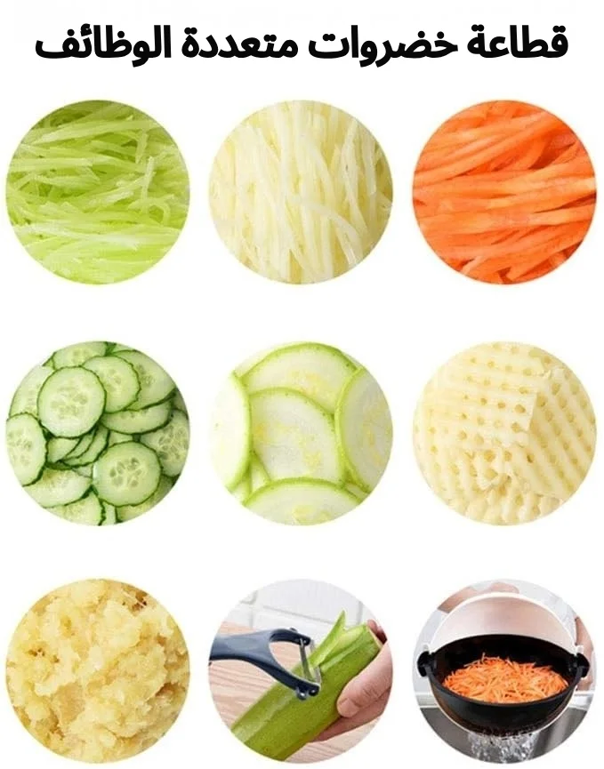 قطاعة خضروات عملية ومبتكرة 9 في 1 تجمع بين التقطيع، البشر، الفرم، والغسل في جهاز واحد.